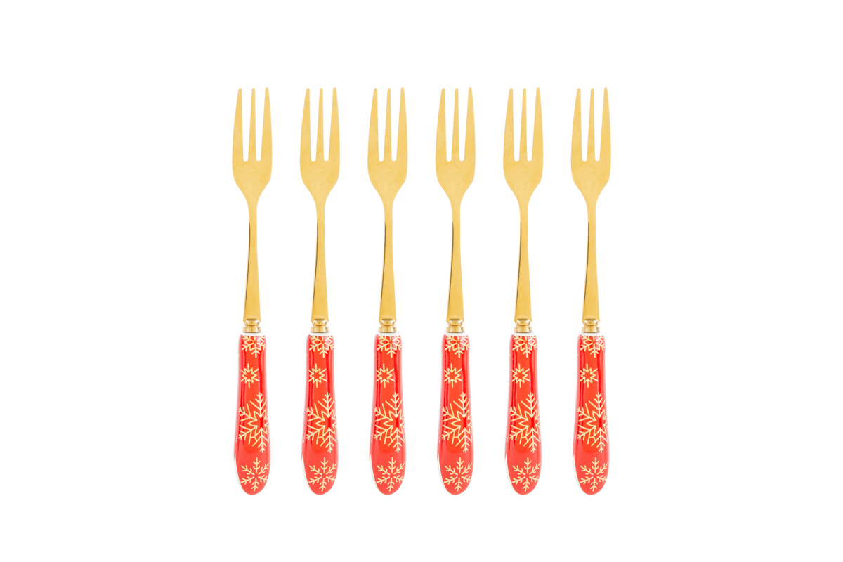 Set 6 forchettine da dolce con manico natalizio rosso - 15 cm