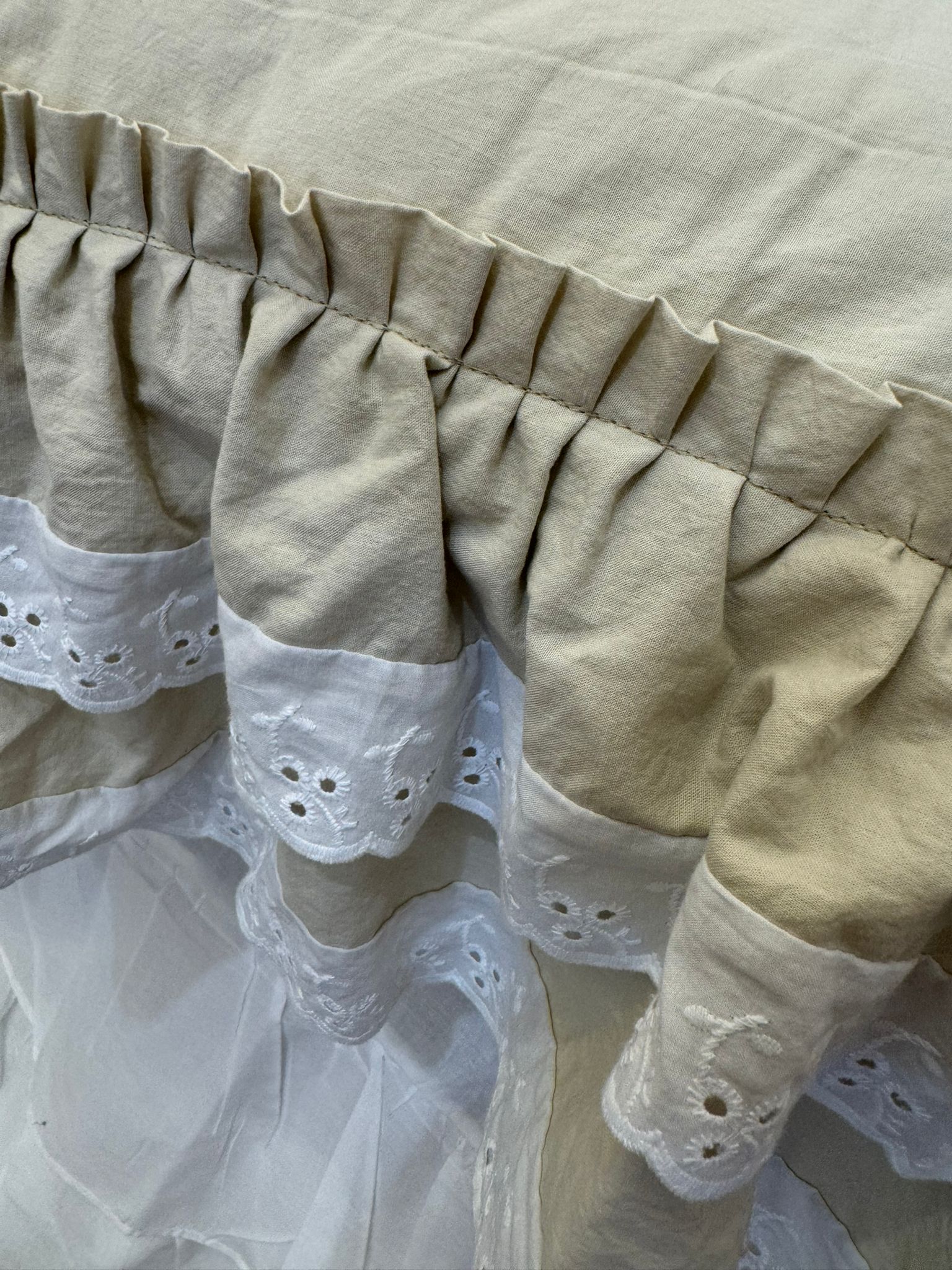 Fondo letto sabbia in cotone con pizzo sangallo - 90x180 + rouches - Fiorentino Home