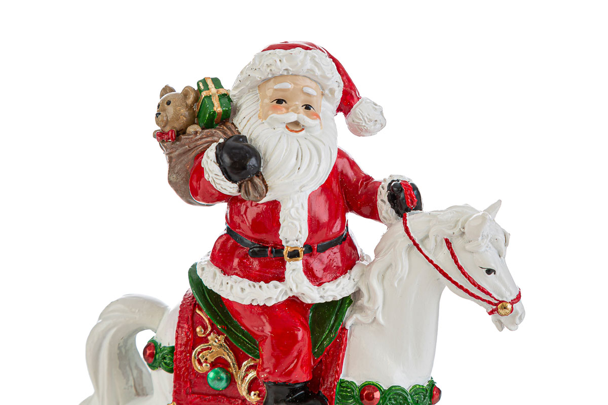 Babbo Natale cavalluccio a dondolo in resina con led - H.18 cm
