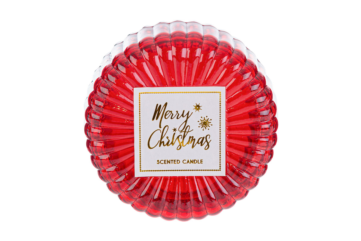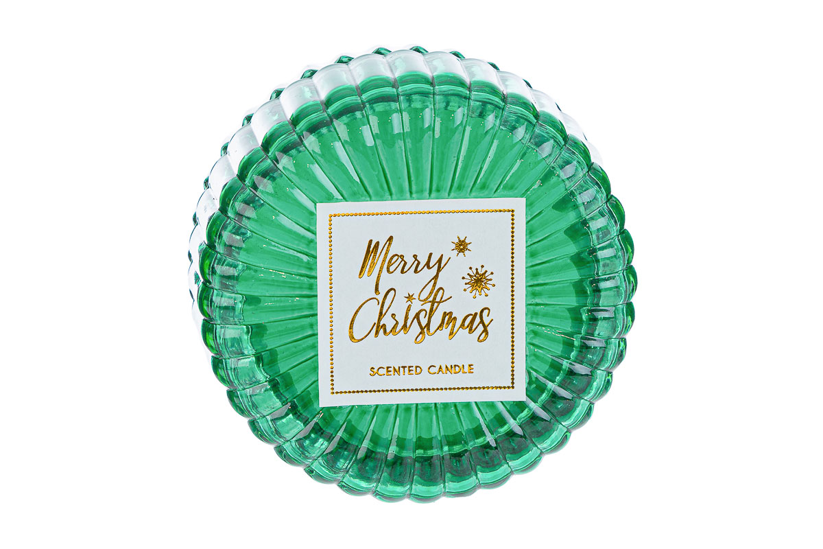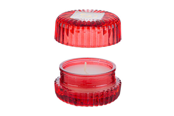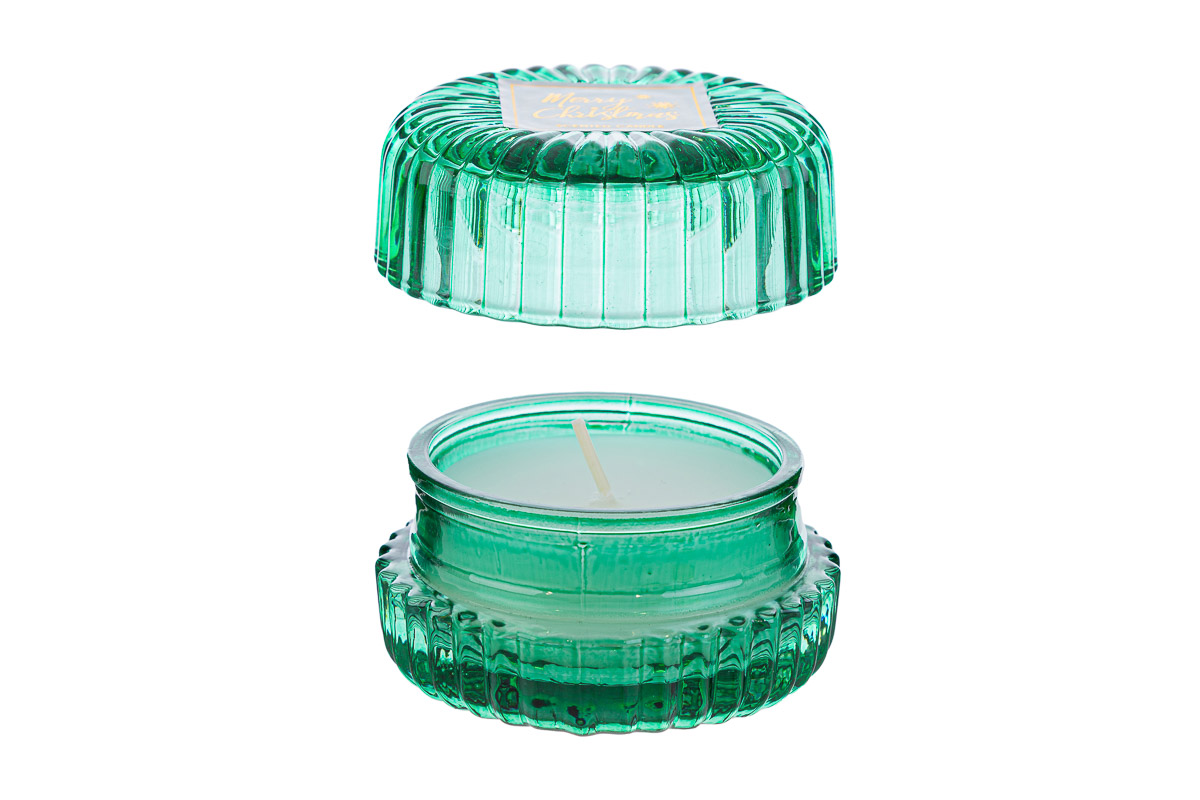 Candela scatola vetro natalizia - verde/rosso - 8x5 cm
