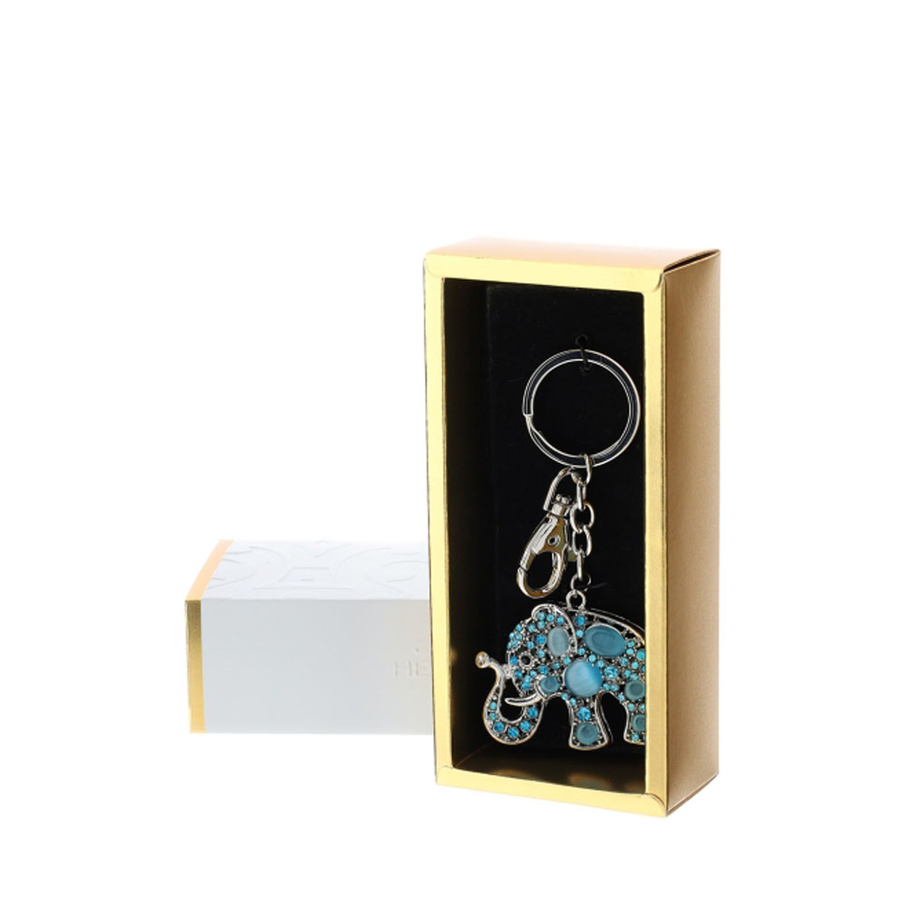 Portachiavi elefantino argento con pietre colorate c/astuccio - 5x12 cm - Hervit