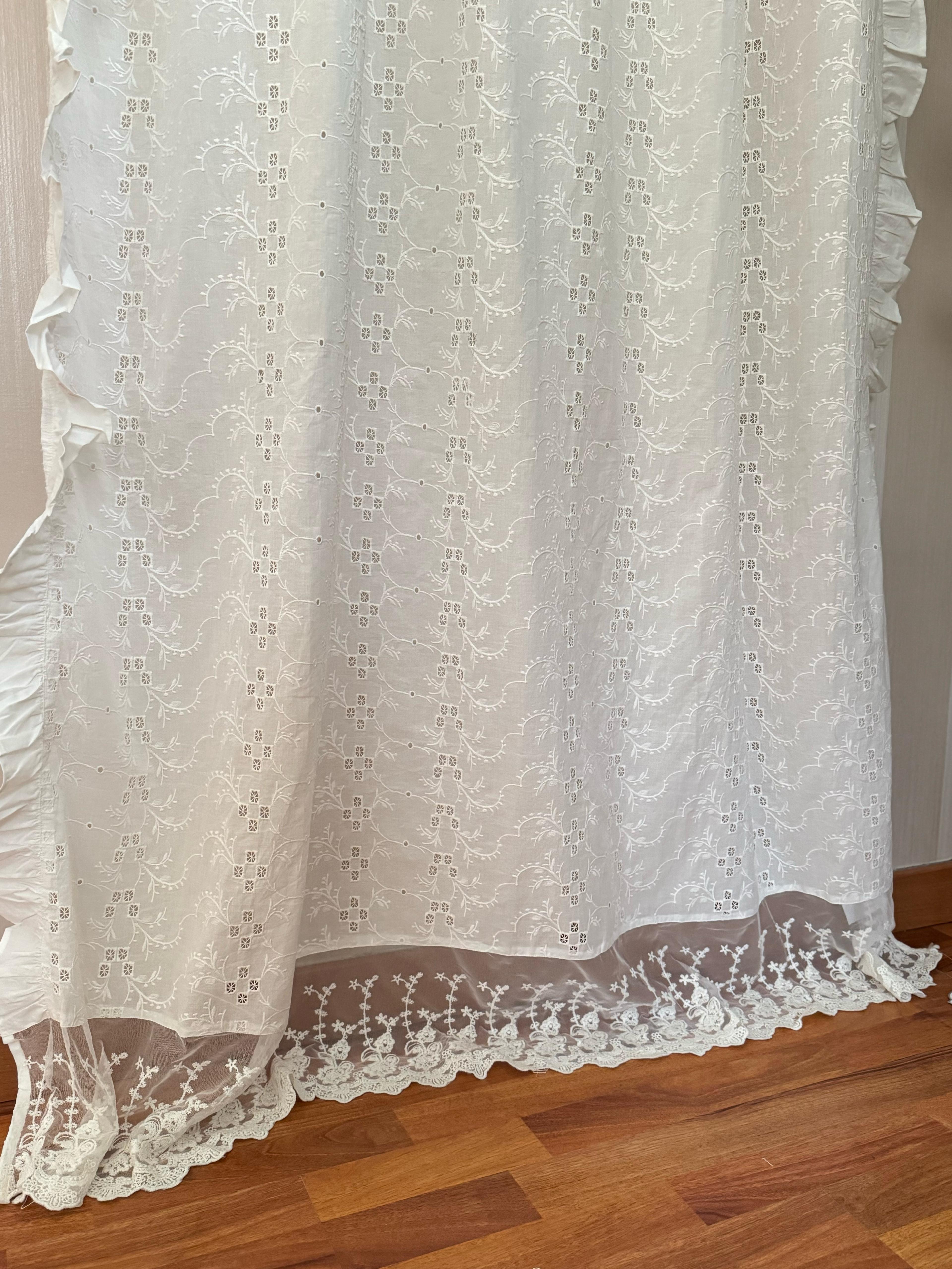 Telo tenda in cotone e merletto con lacci Collezione DENTELLE