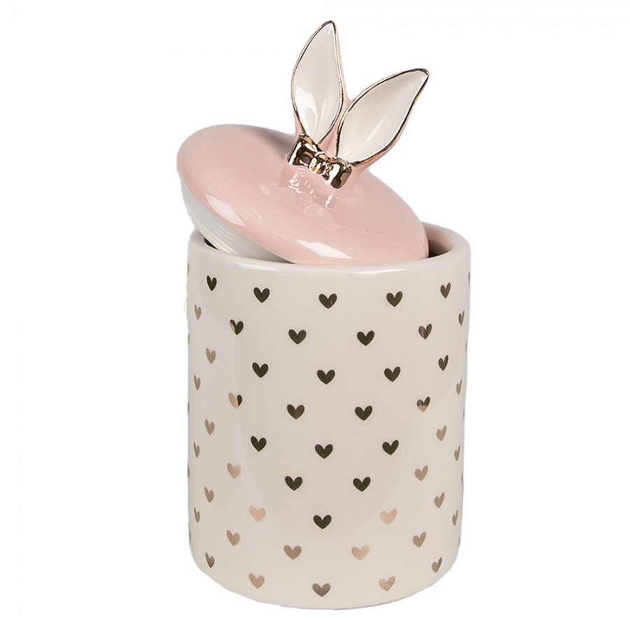 Barattolo ermetico in ceramica bianco a pois con coperchio c/orecchie coniglio - H.22x11 cm - Clayre e Eef