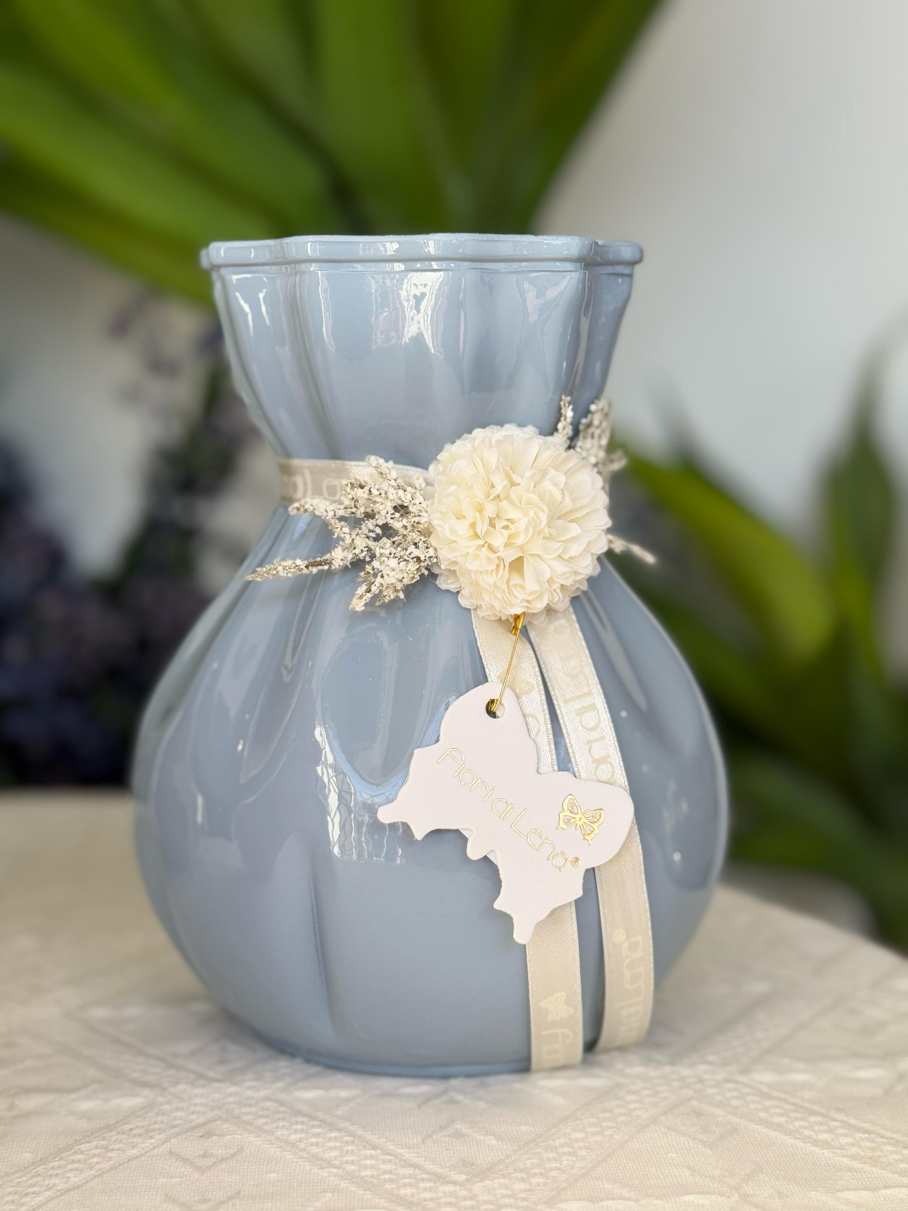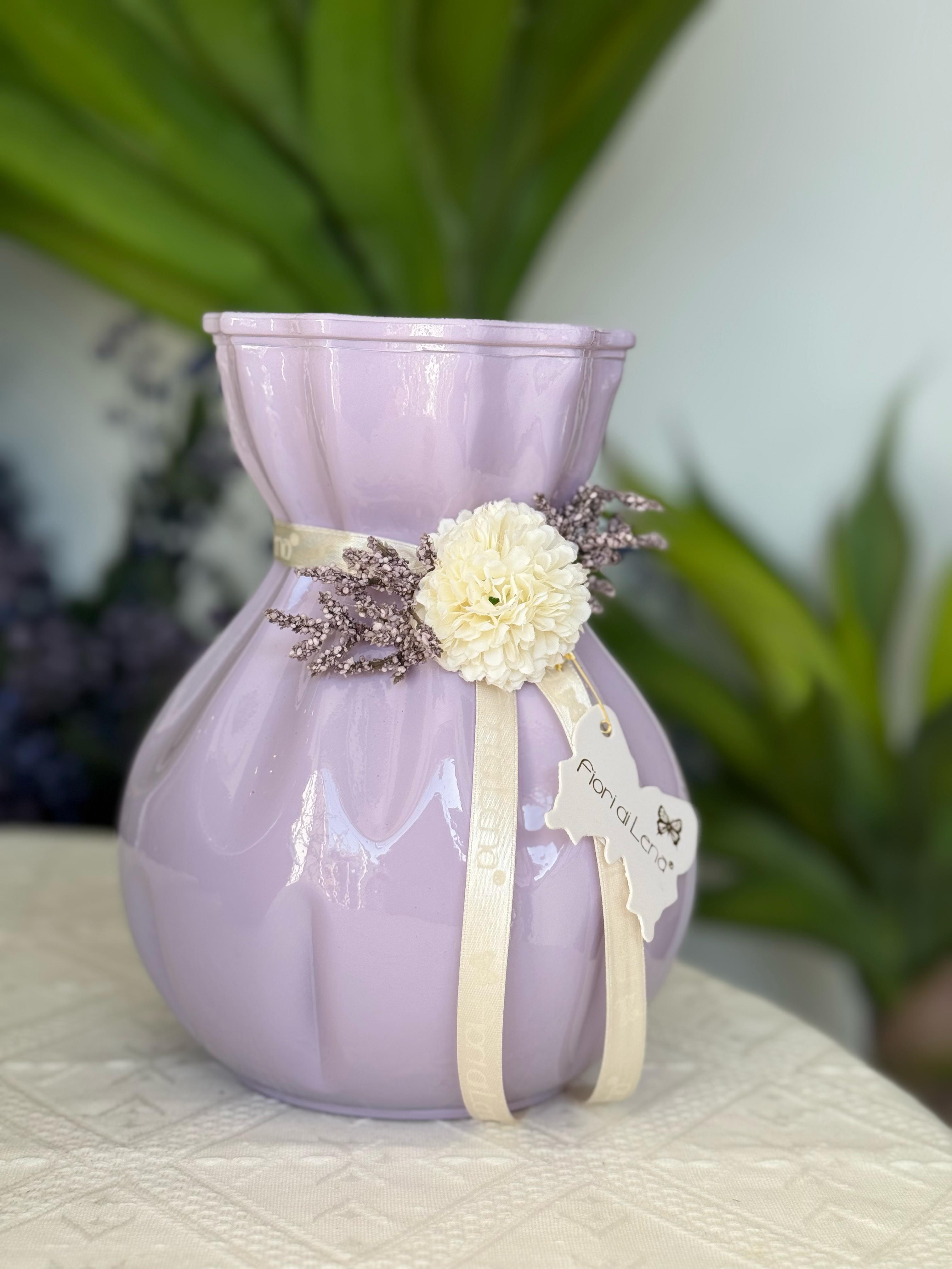 Vasetto in vetro colorato c/applicazione profumata - vari colori - H.18 cm - Fiori di Lena