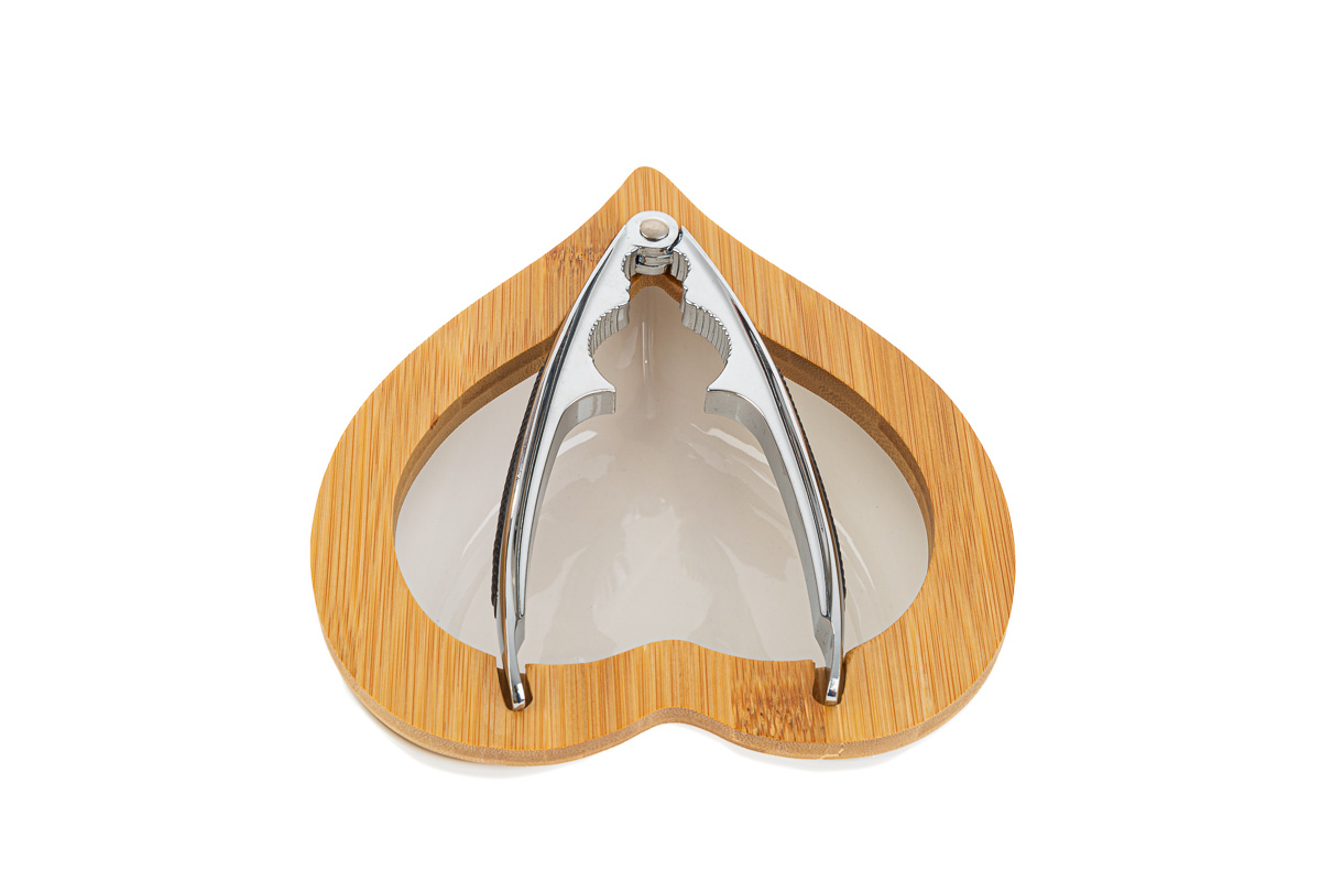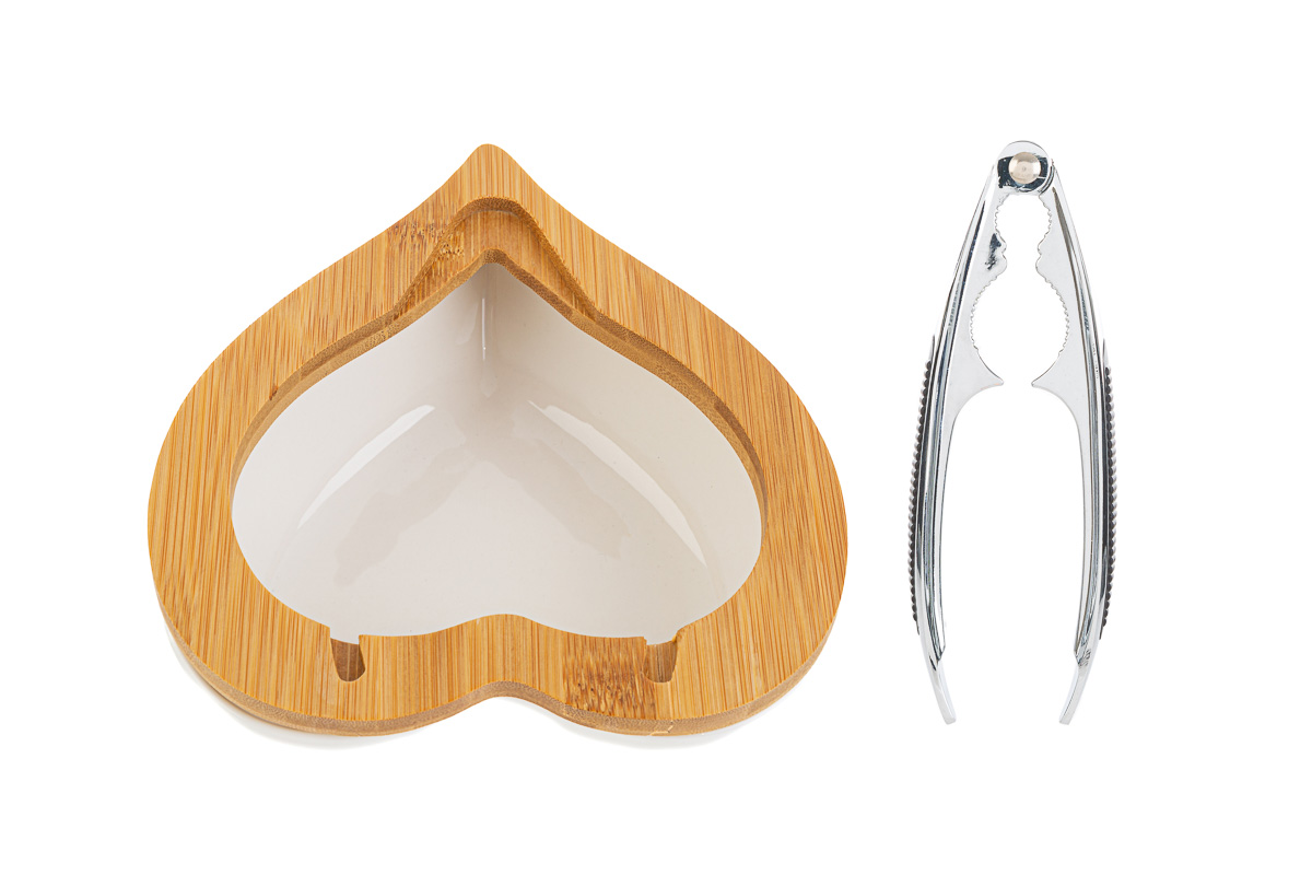 Ciotola a cuore in porcellana e legno c/schiaccianoci e astuccio