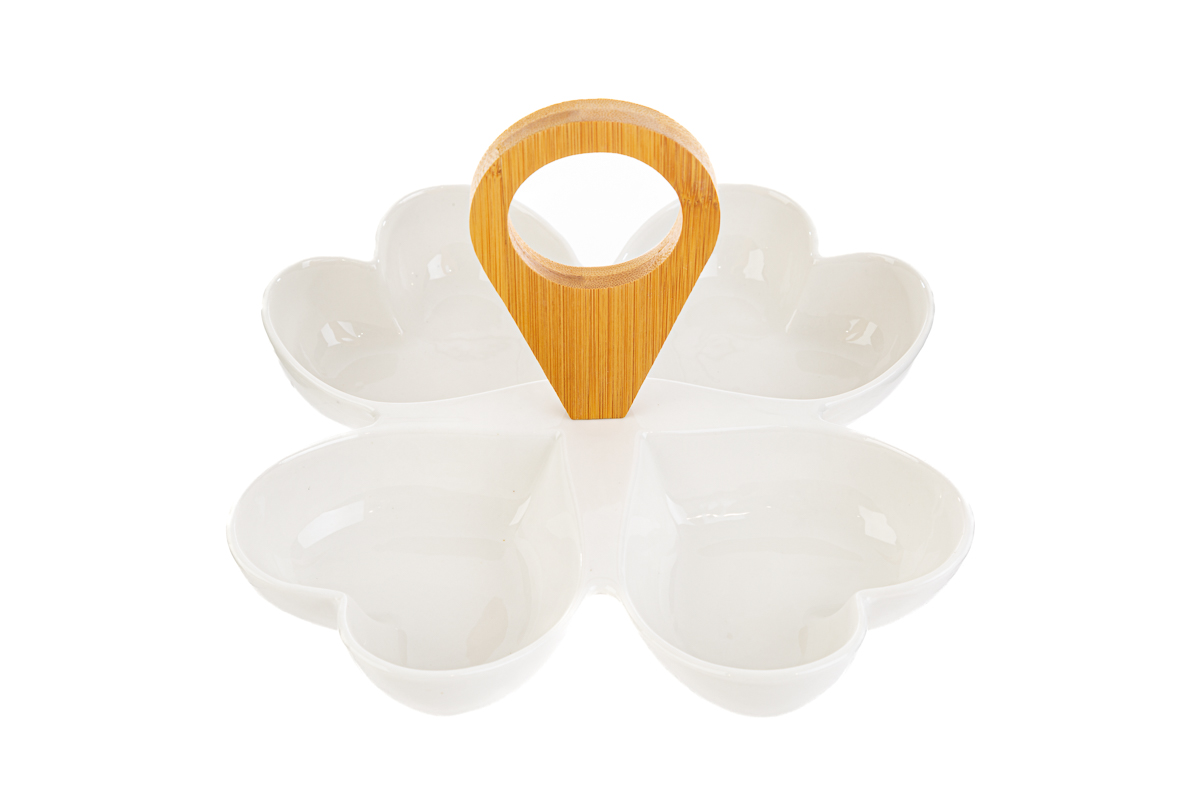 Antipastiera cuori in porcellana e legno c/manico in legno e astuccio - H.16x22 cm - Le Stelle