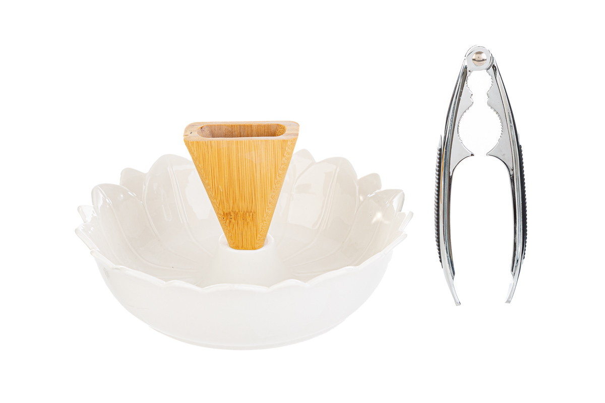 Antipastiera in porcellana c/schiaccianoci con manico in legno e astuccio